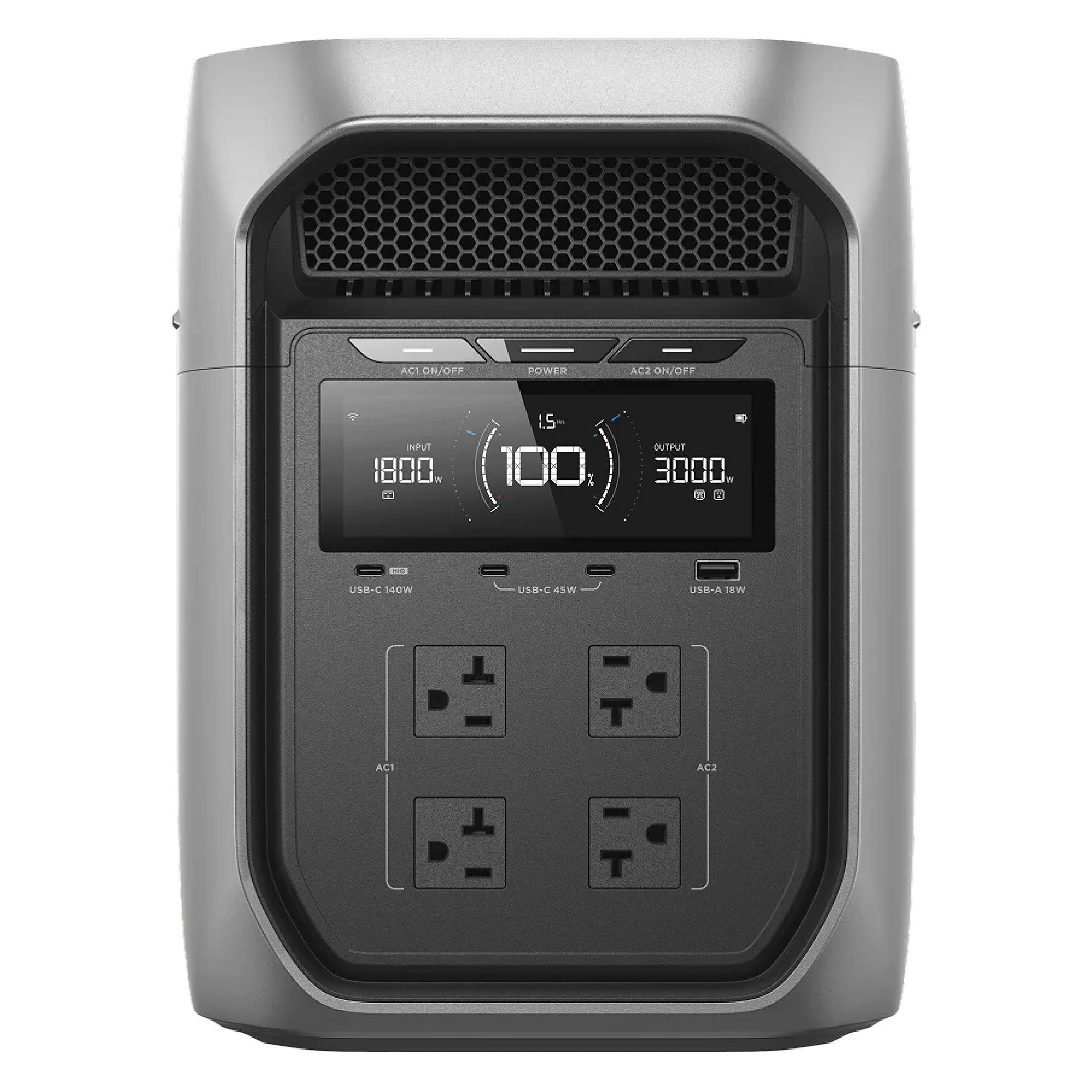Con hasta 3800 W continuos, esta estación portátil puede manejar casi todos los aparatos: refrigeradores, microondas, calefactores y herramientas eléctricas.